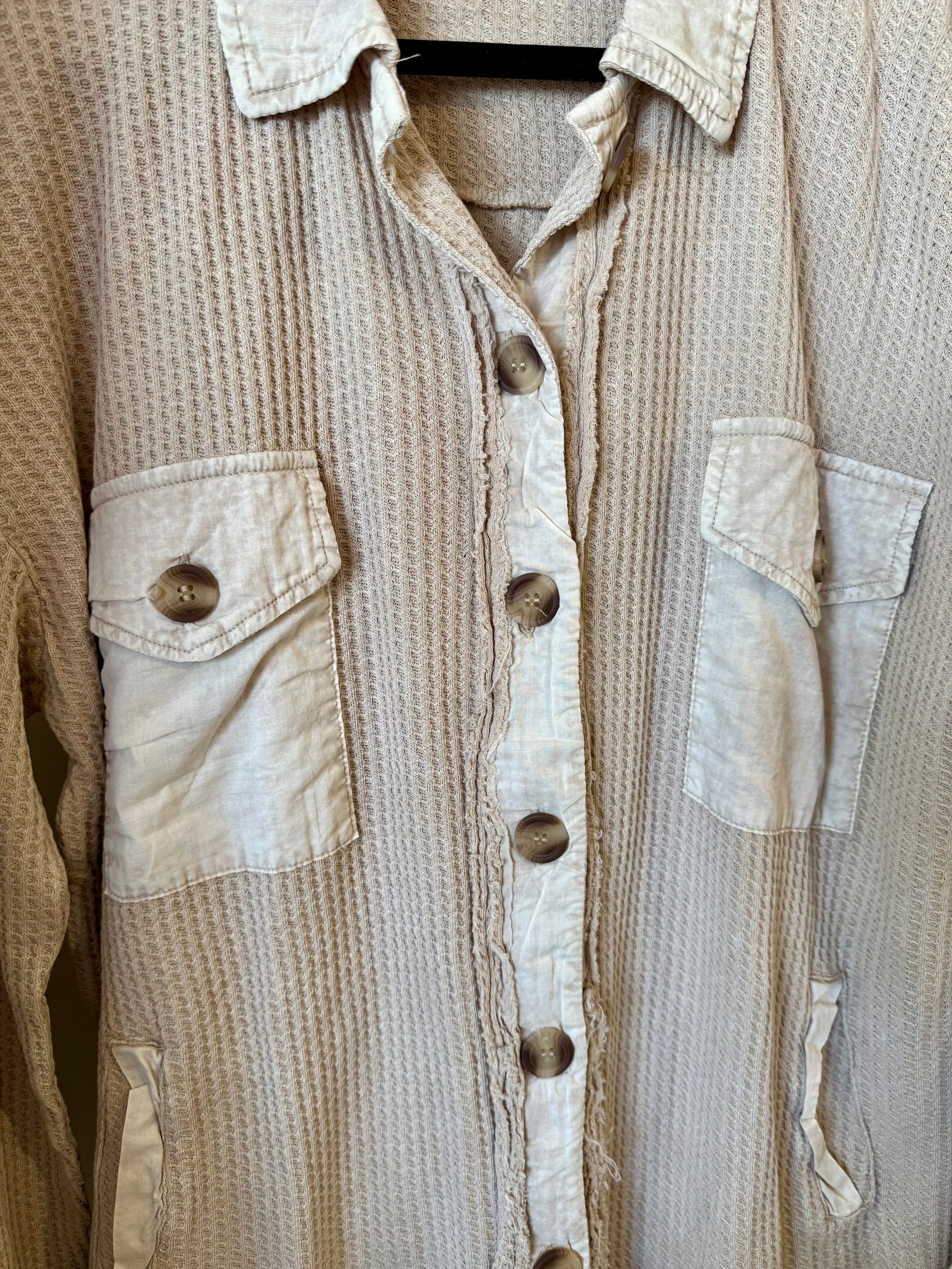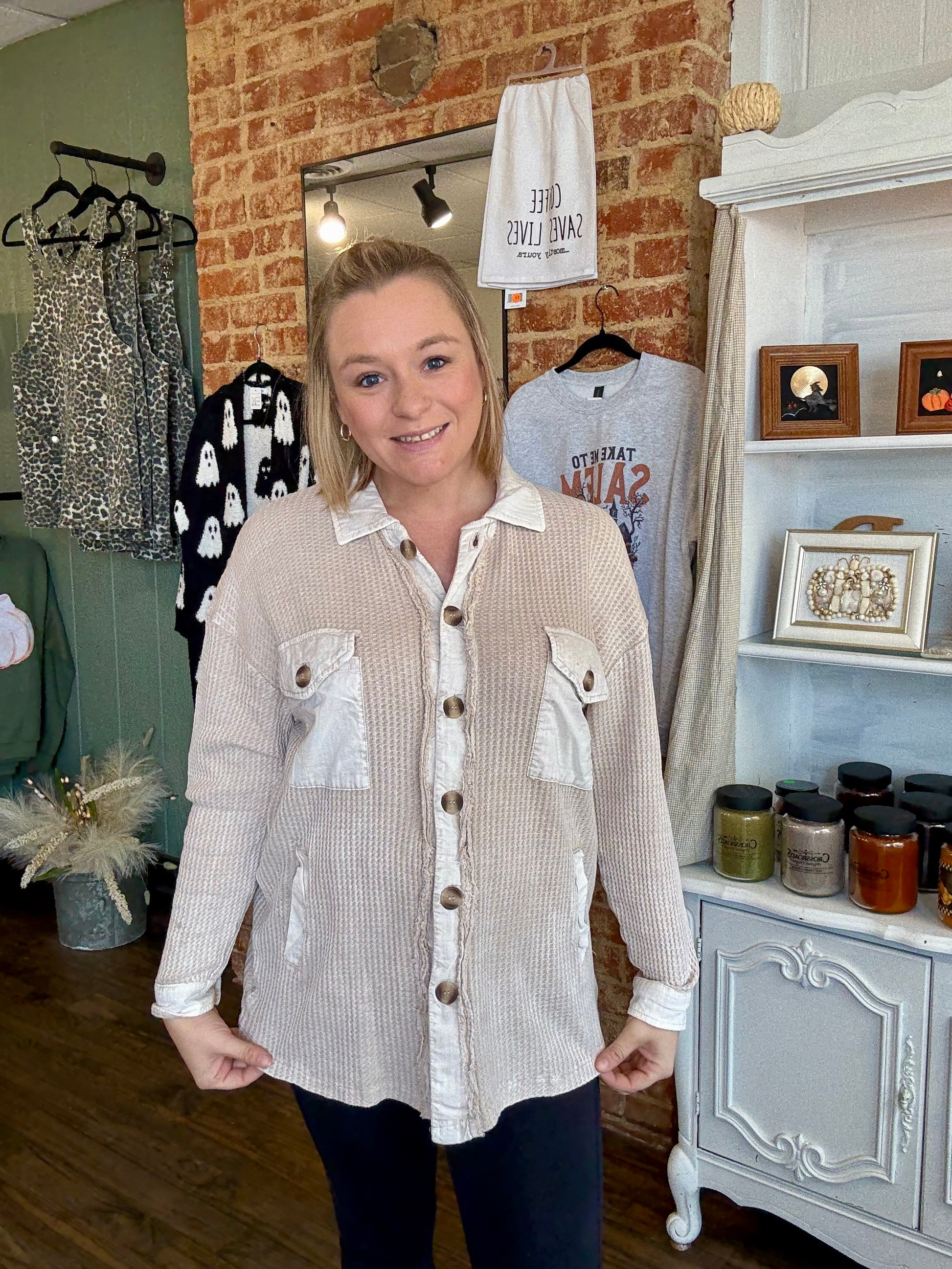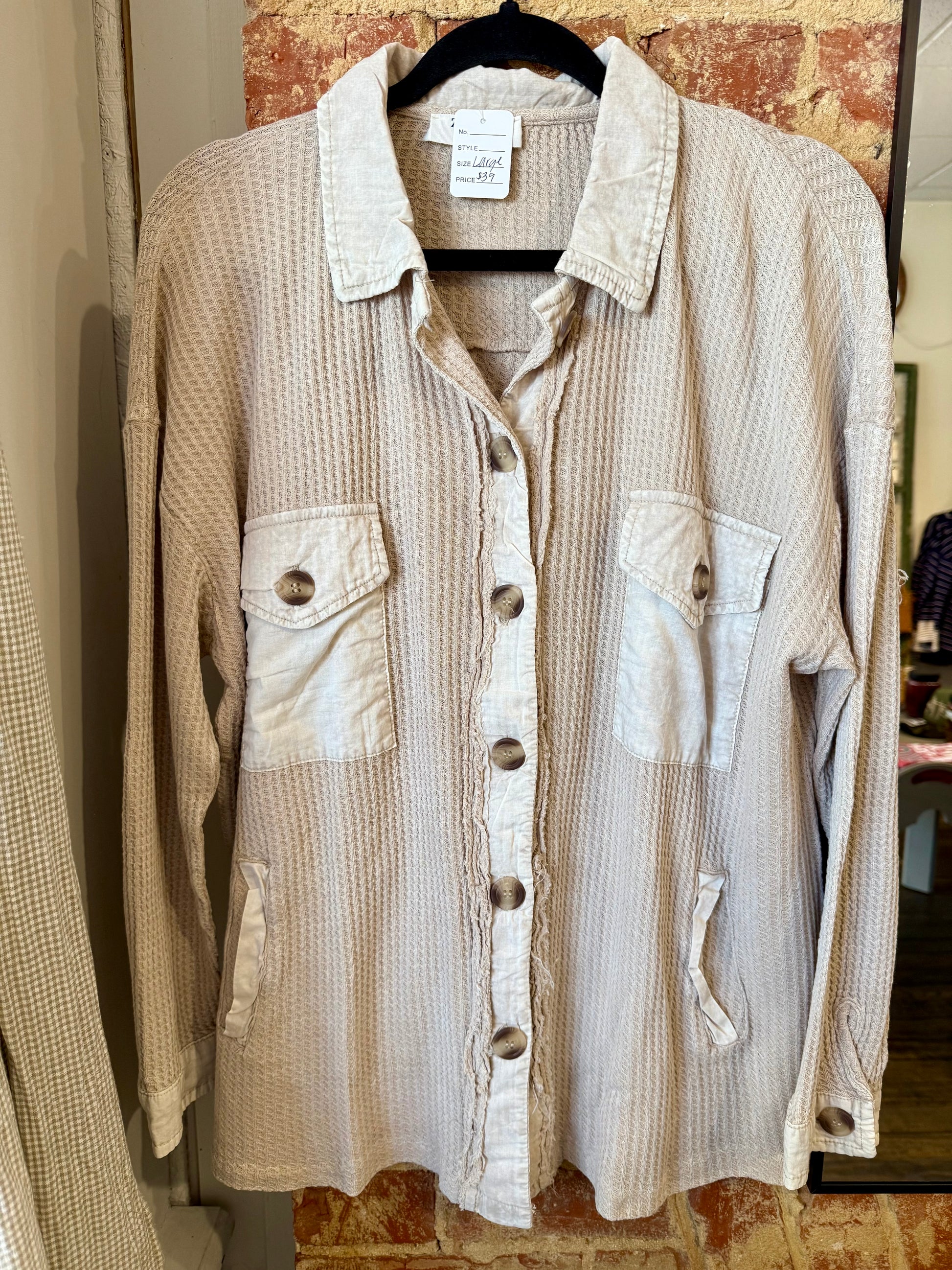 COTTON WAFFLE ACID WASH OVERSIZED SHACKET
