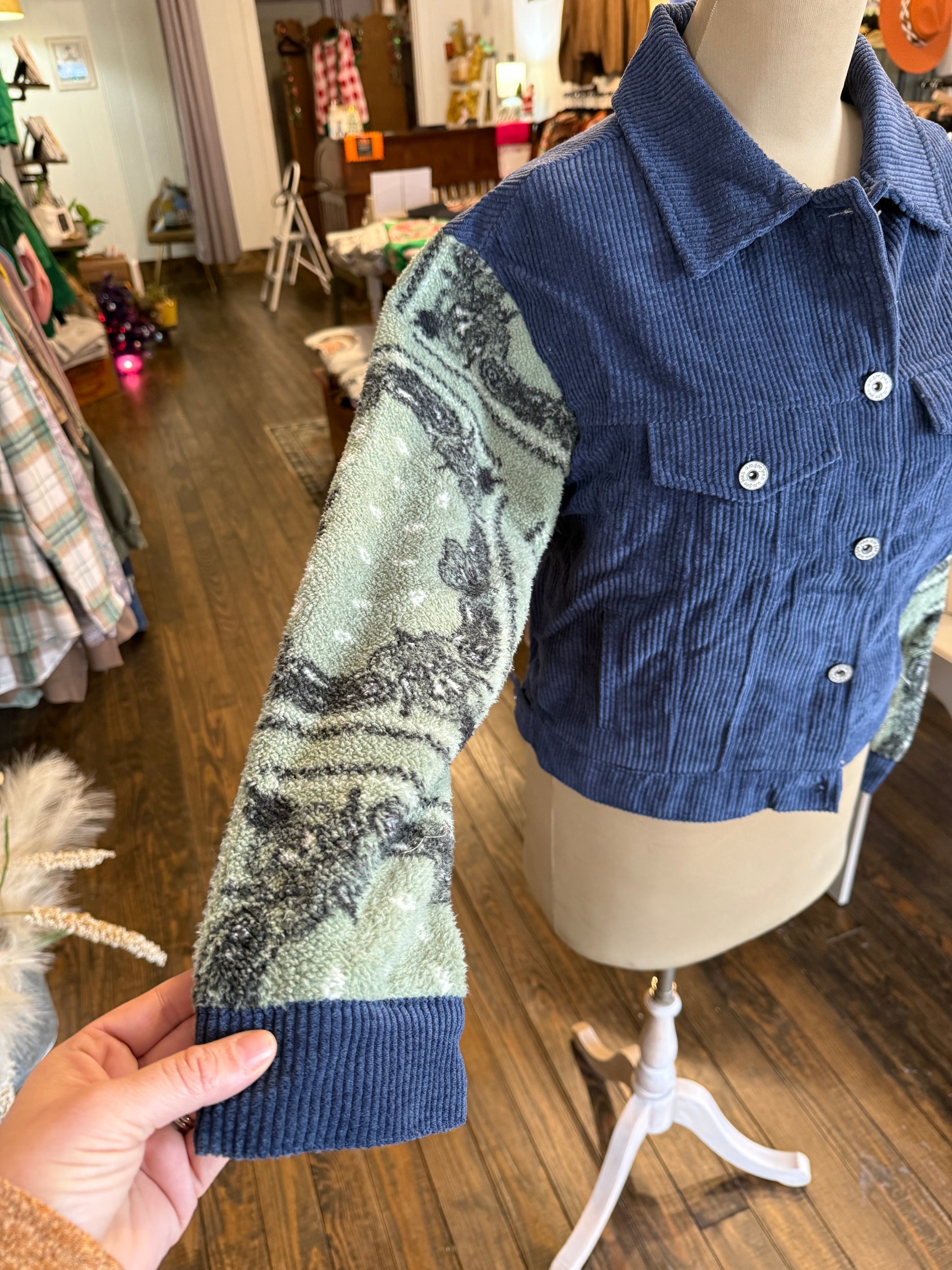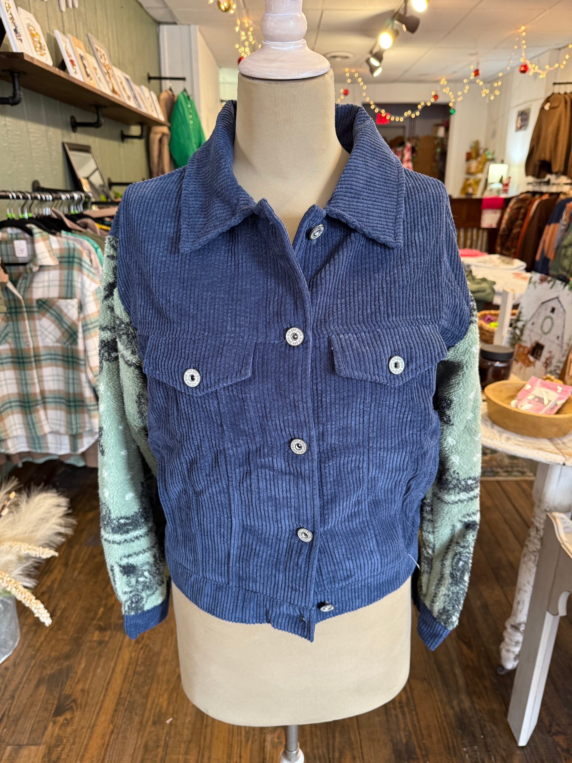 - Corduroy Shacket with fleece sleeves